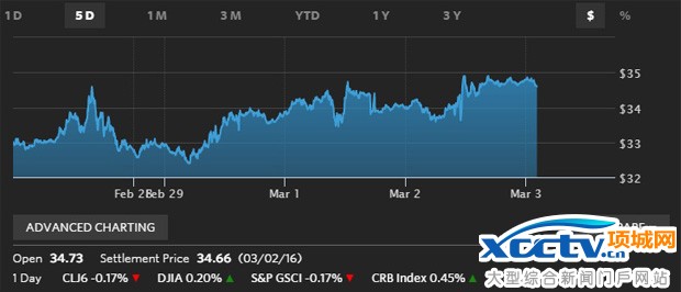 路透商品及能源市场分析师王涛认为,美国原油价格本週结束走跌趋势,西德州中级原油3月目标价上看每桶40美元。