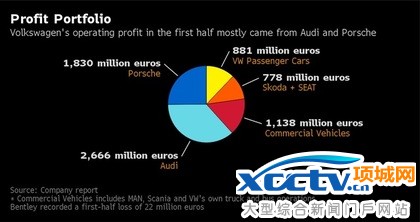 上半年福斯旗下品牌中,对营业利益贡献最多的是奥迪和保时捷(PORSCHE)。翻摄自彭博