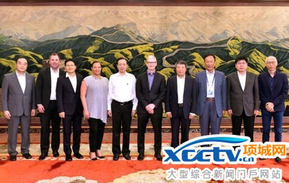 再度访中的美国苹果执行长库克,今天拜会中国国家发改委主任徐绍史。右2为鸿海董事长郭台铭,右5为库克。取自中国国家发改委官网