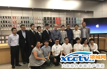 苹果执行长库克今天上午在深圳的苹果专卖店,与对岸的年轻开发者面对面交流。翻摄自新浪科技网站