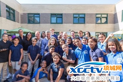 图为苹果执行长库克昨天拜访纽约市布鲁克林区一所小学。翻摄自库克个人推特