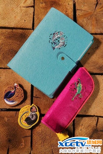 台湾在地特有种系列。以刺绣表现台湾特有的4种动物,石宾、弥猴、蓝腹鷳、翡翠树蛙,做成笔记本、笔袋、证件套、吸铁等,售价200~400元。李柏毅摄