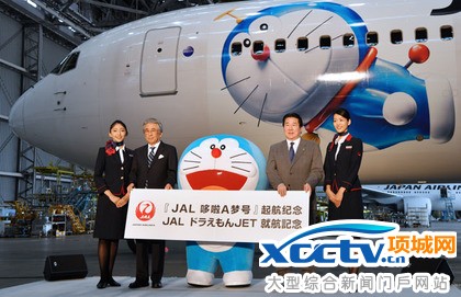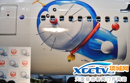 日本共同社报导,日航昨天展示哆啦A梦彩绘机