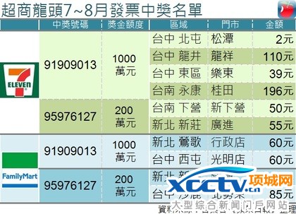 统一超商及全家开出本期千万发票及200万奖项明细。
