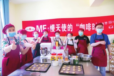 自闭症孩子在这里,不仅能学习社交礼仪,更能煮咖啡、做烘焙、做手工、组乐队、演话剧等,“我们帮扶过的自闭症患者从几个月到中年人都有,年龄跨度比较大,在这里每周我们都会组织不一样的活动,比如骑行、表演非洲鼓,也会学习社会技能,比如点餐、社交礼仪等,这些都是免费的。”