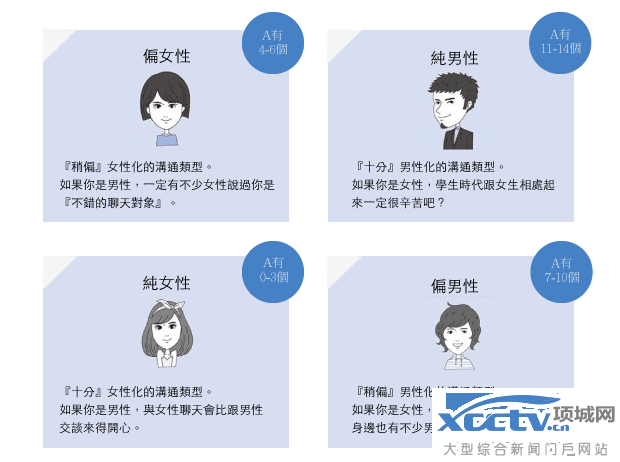 这并不是以生物学为基础的男女之分、也不是个性诊断,纯粹是针对沟通模式所进行的检测。你是偏男性?还是偏女性?