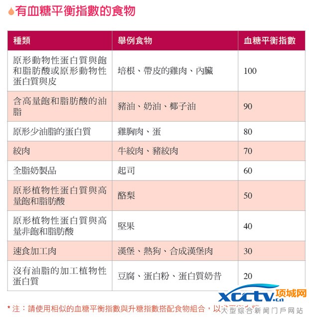 血糖平衡指数最高的食物是同时含有蛋白质和油脂的食物,比如五花肉或带皮的肉。当油脂中饱和脂肪含量愈高,血糖平衡指数就愈高。这就是为什幺即使猪肉和花生都有蛋白质和油脂,但是猪肉的饱和脂肪比花生高,所以猪肉有较高的血糖平衡指数。