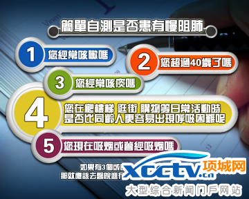 生活当中,咳嗽、咯痰往往会被当中感冒而被忽视,如果长期以往的话,容易错过慢阻肺最佳治疗时期,所以,我们在家的时候,可以自己检测一下是否会有患慢阻肺的可能性: