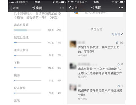 还记得快房网做过一个有关杭州房价第一降的会发生在哪个的板块投票吗?结果出来了,有1355人参与了投票,其中47%的人将“第一降”投给了未来科技城,与排名第二的钱江世纪城相差37%选票。在留言里,大部分人也认为未来科技城会率先降。