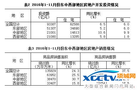1-11月份,东部地区房地产开发投资51307亿元,同比增长5.2%,增速比1-10月份提高0.2个百分点;中部地区投资21001亿元,增长10.6%,增速回落0.5个百分点;西部地区投资21080亿元,增长5.8%,增速回落0.3个百分点。