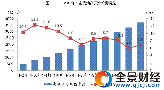 2016年,本市房地产开发投资3709.03亿元,比上年增长6.9%,增速较上年回落1.3个百分点(见图1);本市房地产开发投资占全社会固定资产投资比重为54.9%,比上年提高0.3个百分点。
