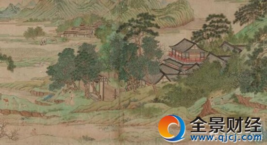 明仇英《桃花源图卷》(局部)纸本重彩33.0cm x 472cm美国波士顿艺术博物馆藏