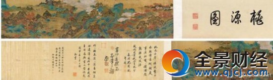 《桃花源图卷》追求的是文人雅士理想中的世外桃源,表现文人休闲生活的主题,整个山水都围绕著人物来营造意境,人物是整体画面的中心。画面富有浓厚的装饰性趣味,让人把桃花源的故事,引起仙乡灵境的联想。