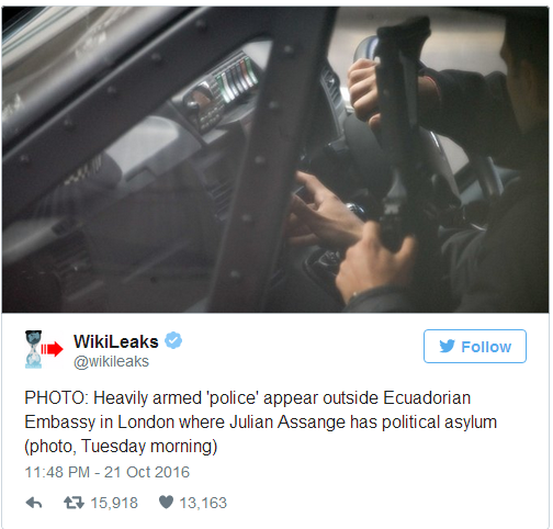 由于在攻击前不久,维基解密曾在Twitter上表示维基解密创始人阿桑奇藏身的厄瓜多尔大使馆外出现了大批“全副武装的警察”,这被视作阿桑奇的求救信号,此前阿桑奇刚刚被切断了网络连接。