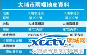 项城网讯:港府早前公布两幅位於大埔露辉路的大埔市地段第223号及大埔市地段第229号的用地招标,前者地盘面积230866平方尺,最高可建楼面336083平方尺,后者地盘面积110740平方尺,最高可建楼面161209平方尺,两幅地均於本周五(4日)截标。
