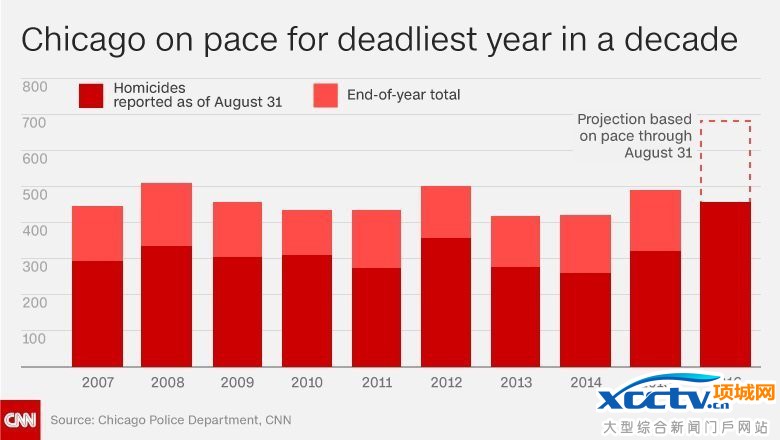 从这样的数据来看,美国有线电视新闻网(CNN)9月初报道,芝加哥今年以来平均每周发生82起枪击案,也就顺理成章。