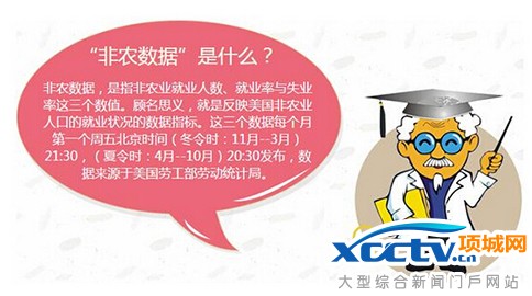 非农数据,是指非农业就业人数、就业率与失业率这三个数值。顾名思义,就是反映美国非农业人口的就业状况的数据指标。这三个数据每个月第一个周五北京时间(冬令时:11月--3月)21:30,(夏令时:4月--10月)20:30发布,数据来源于美国劳工部劳动统计局。