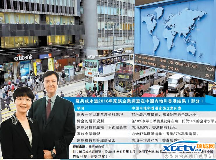 项城网讯:家族企业在中国内地及香港经济上贡献良好,众多知名企业亦属家族经营。不过,罗兵咸永道發表最新两年一度全球家族企业调查指出,内地及香港家族企业於传承规划上,较其他国家稍为落后。受访内地及香港企业中,只有10%表示有健全的继任计划,并已记录在案与清晰传递,低於全球水平的15%。