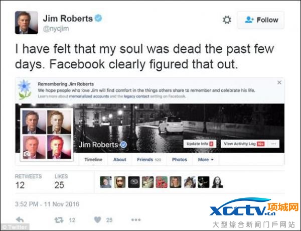 “所以脸书是错误地通知人们用户都死了,包括我......”