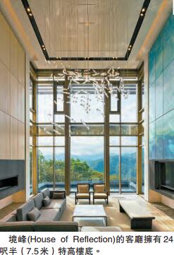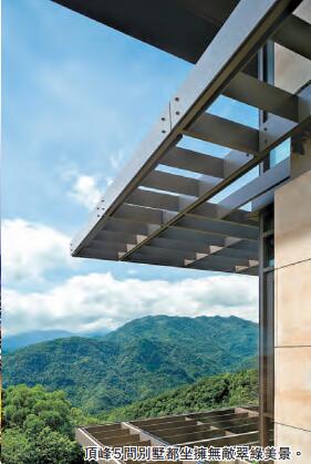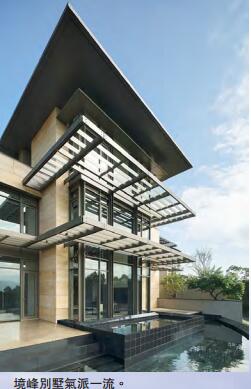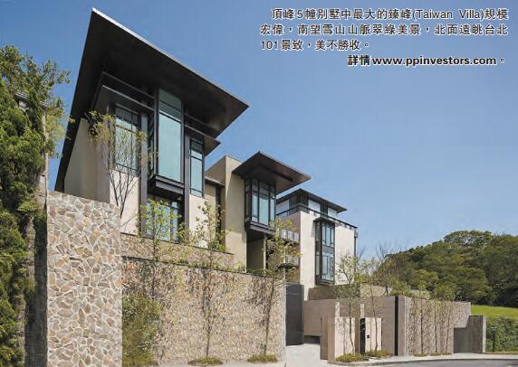 項目頂峰5幢別墅中最大的臻峰(Taiwan Villa)規模宏偉,建築面積13718平方呎,花園面積23961平方呎,樓高4層,恍如山峰上瑰麗的堡壘,室內空間寬敞可設6間套房。屋內有兩組電梯,大廳特高樓底恍如置身劇場,還有遊泳池玻璃天橋,南望雪山山脈翠綠美景,北面遠眺臺北101景致,美不勝收。習慣看香港自稱豪宅的細小蝸居,再看頂峰這幢真豪宅,「真係唔想返香港」!