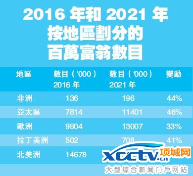 报告指,未来5年,内地的财富增长有望保持强劲升势。以按年增长9.2%计算,预计到2021年,财富总值将达36万亿美元,但增幅料将低於2000年至今年的11%。内地目前的百万富翁人数为160万,财富总值达6.6万亿美元。以按年增长11.6%计算,预计到2021年百万富翁人数将达270万。