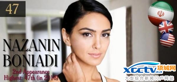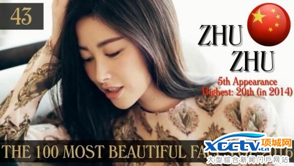 朱珠:排名43,第五次入选,最高排名是2014年的第20位。
