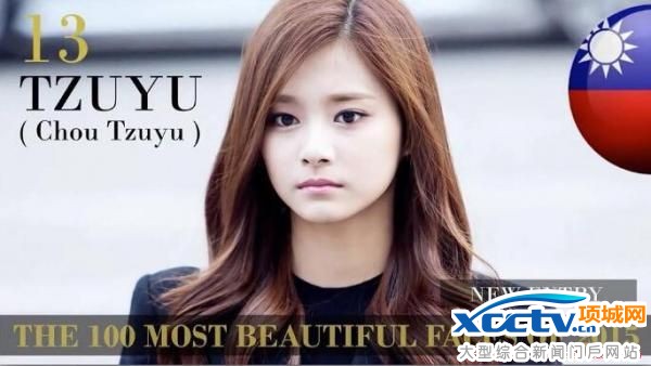 视频里放出的入选者的照片,均会在右上角圈出国旗,显示上榜者的国籍。而来自台湾地区的周子瑜,和其他人不太一样。