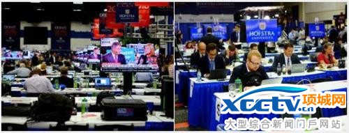希拉里和特朗普两人风格迥异、政见相悖,又都具有很高知名度,自然吸引了庞大的媒体报道大军,也有媒体预测这场辩论的收视率有可能刷新纪录。早在辩论前数小时,新闻中心内就有很多记者严阵以待。