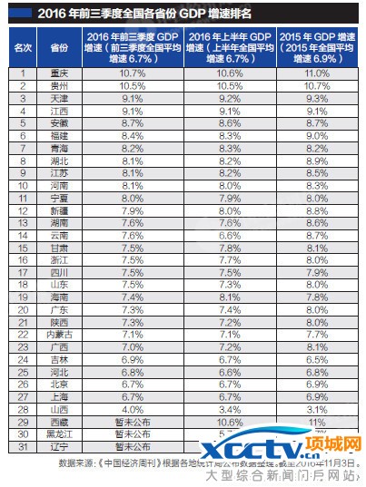你方唱罢我登场。在国家统计局10月19日公布2016年前三季度国民经济运行情况相关数据后,据《中国经济周刊》报道,各省、自治区、直辖市也陆续发布了前三季度GDP增速“成绩单”。