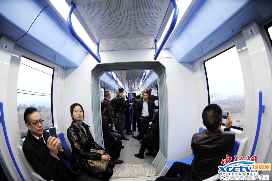据华西都市报11月21日报道,当天记者也参与了试乘。这条新能源空铁试验线,为架设于5米之上空中的白色轨道。列车车厢与地铁类似,左右两侧分列座椅,当天因试乘者多,整体感觉有些挤。据称,一列空铁最高承运量为230人次。