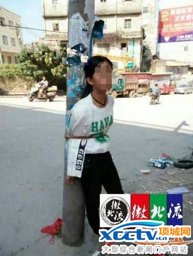 12月15日,据媒体,广西北流六麻镇有三名少女在街上偷电动车时被人发现,被捉后一名少女被人绑到了电线杆上,路过的行人纷纷看向被绑少女。随后警方到达现场,为女孩解绑并戴上手铐,带回了派出所。