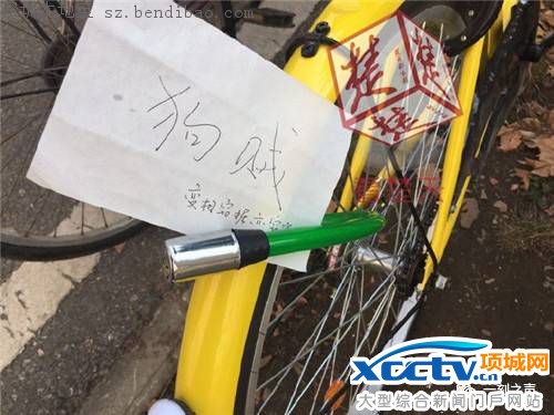 12月13日,据《楚天都市报》,近日就读湖北某大学的姜同学多次在学校看到一辆公共自行车被同一把绿锁锁住,沦为私用,气愤的他将车放气并留下字条:“变相窃据亦为窃盗”。