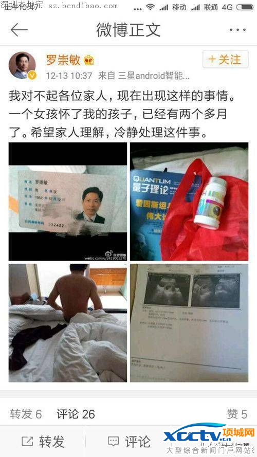 12月13日,今日上午,认证为“国家督学、云南省人民政府参事、原云南教育厅厅长”的微博账号“罗崇敏”发布消息称,对不起家人,“一女孩怀了我的孩子”,微博配有图片,包含罗崇敏身份证图片、B超图片等。