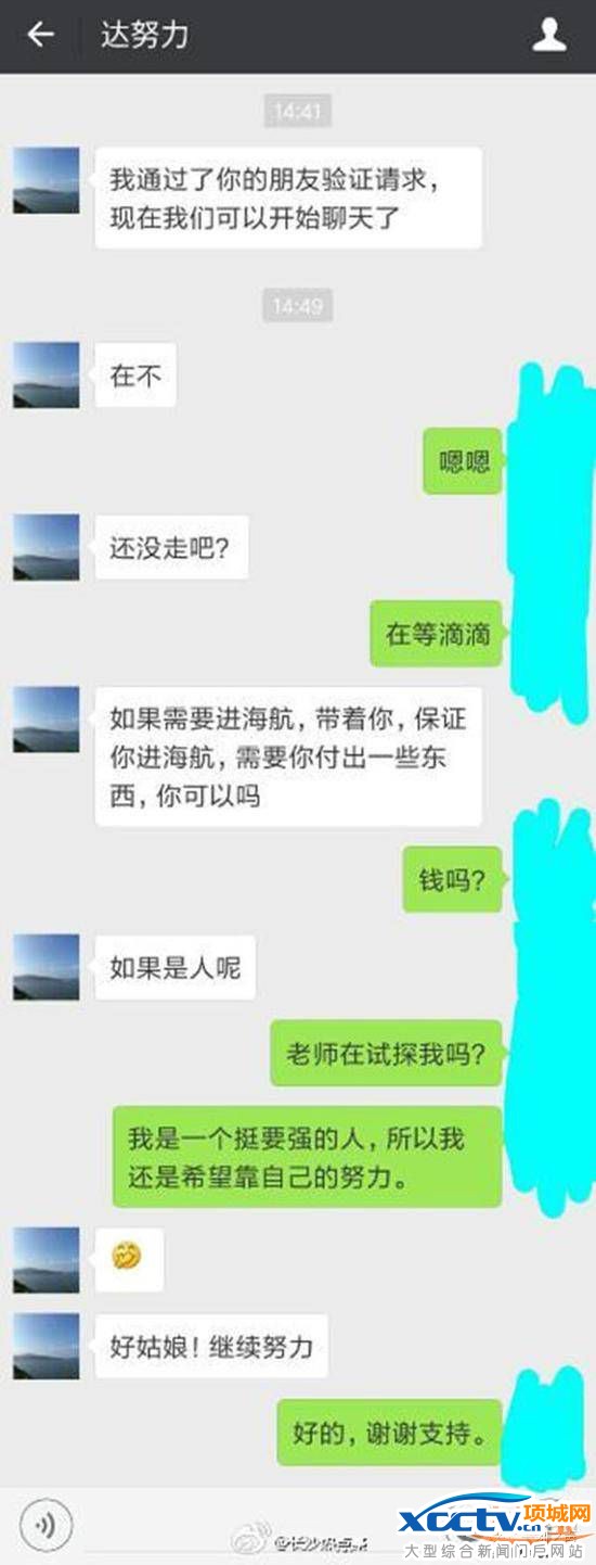 12月22日,据网易新闻,网曝近期海南航空来长沙招聘,有考官私下潜规则应聘学生。把学生带到自己的酒店房间,说些暗示性的话,然后发信息直接说明,遭拒绝后就直接拉黑。网友提供的聊天截图显示一个微信名为“达努力”的男子添加一名女考生为好友后,试图对该考生进行潜规则但被拒绝。对此,海南航空回应,依据公司规定,现已对涉事人员给予开除处理,并保留向后续其追究法律责任的权利。