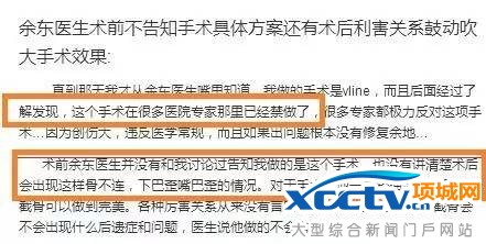 并称术后自己的病情迅速恶化,余东还给自己做了在很多医院已被禁做的手术。