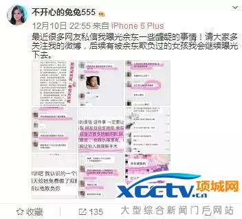 兔兔还在微博上传了多张网友私信截图,称这些女孩都受到过余东的骚扰。