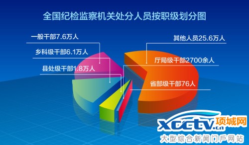 根据通报,2016年,全国纪检监察机关共接受信访举报253.8万件次,处置问题线索73.4万件,谈话函询14.1万件次,立案41.3万件,处分41.5万人(其中党纪处分34.7万人)。处分省部级干部76人,厅局级干部2700余人,县处级干部1.8万人,乡科级干部6.1万人,一般干部7.6万人,农村、企业等其他人员25.6万人。