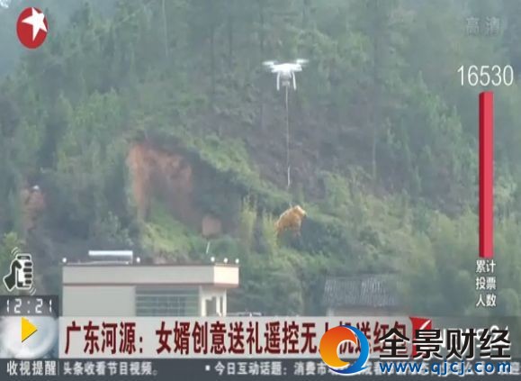女婿无人机送红包 丈母娘回礼挂只鸡 画风清奇!(图)