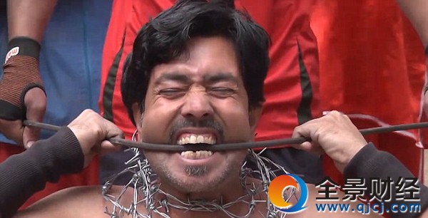 据悉,这则视频摄于巴基斯坦一所“特技学校”,时常约1分钟。最初,视频中的男子用金属夹子夹自己的眼皮。当摄像机逐渐下移时,观看者可以看到夹子被用绳子绑在砖块上。该男子持续地晃动挂着砖块的眼睛。之后,他又试图用自己的嘴“折弯”一根金属条。