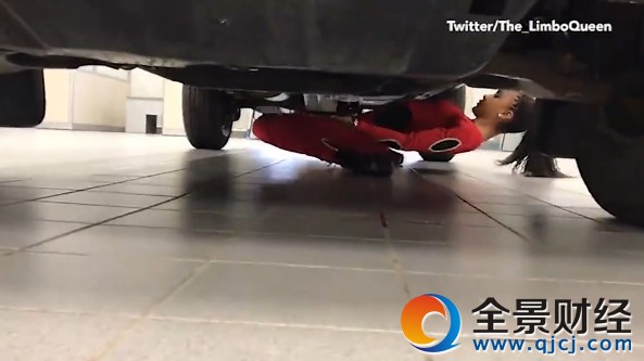 原标题:女王仰身穿车底 身体的柔韧性惊人