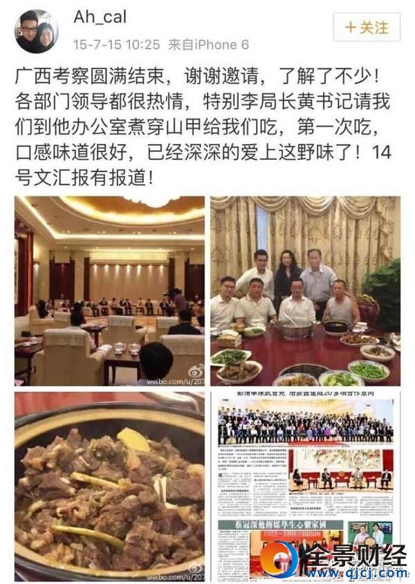 实际上,该位女子微博内容在美食上可谓匠心独特,有媒体报道称完全把广西李局长黄书记在办公室吃穿山甲比了下去。你看,她吃穿山甲讲究的“套餐”,不管是穿山甲的肉和鳞片,甚至血都能吃出美味佳肴来 全景财经网微信号:石化宝
