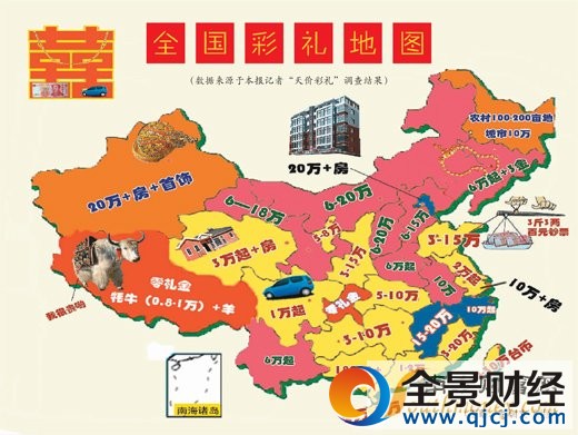 中国彩礼地图?中国彩礼地图出炉看看你的家乡是多少?(2)