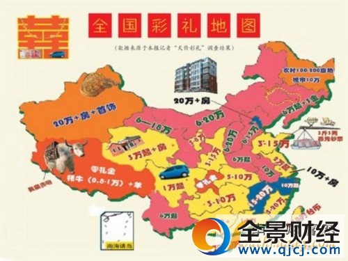 中国彩礼地图?中国彩礼地图你的家乡要多少彩礼?(2)