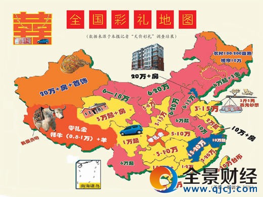 遥想2013年的时候,“全国彩礼地图”初来乍到就微博走红,势头一点也不亚于今天的朋友圈。一张以地图形式标注了中国各地的结婚彩礼金额,看得人是心惊肉跳啊。当时抱着地图哭天抢地的人就不少了,然今日的这份地图一出来,似乎更多的是一种心照不宣的辛酸。