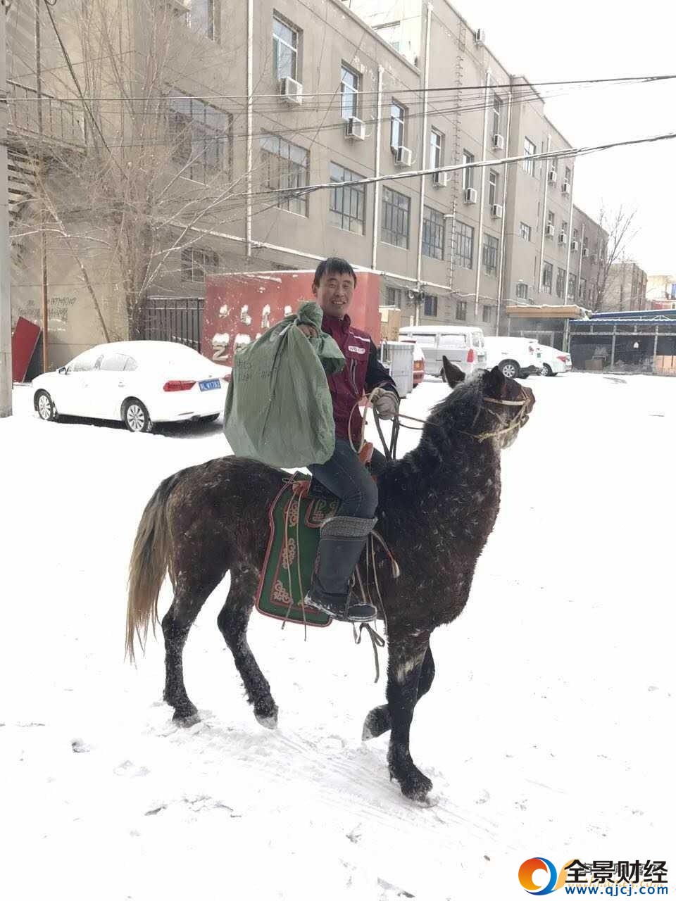 雪天骑马送快递:只为不耽误送货时间 快递小哥简直帅出新高度