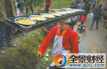 这天的乡宴上,18道菜都是陈长发老人打盆送到餐桌旁,整个传菜过程不到20分钟。每逢过年过节,红白喜事,老人都很忙,乡里乡亲要摆宴席的都想请他来秀一把。 全景财经网微信号:石化宝