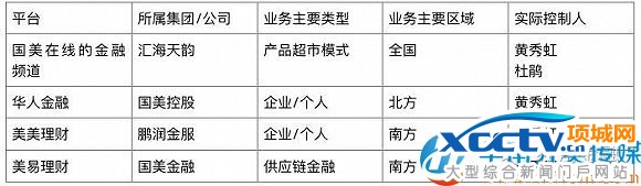 不过,所有平台都有着相同的归属。经野马财经梳理,这些平台,除了国美在线的金融频道背后站着黄光裕的妹妹黄秀虹和杜鹃外,其他的最终实际控制人都指向了黄秀虹,她是鹏润控股的董事长,同时兼任国美控股集团有限公司总裁。