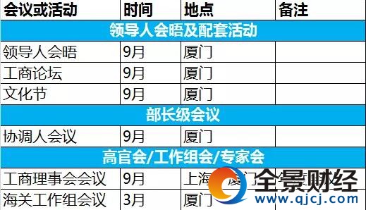根据2017年金砖国家领导人会晤官方网站公布的《2017年金砖国家合作全年会议安排》显示,厦门将举行以下这些会议或活动: