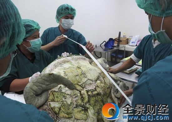 这只海龟吞下的硬币价值45英镑(约合人民币380元),也因此被人们戏称为“银行”。朱拉隆功大学的5位外科医生给“银行”做了全身麻醉,由于切口只有10厘米长,而硬币存放得太深,因此兽医生们一次只能取出几枚硬币,而剩下的大部分硬币则被腐蚀或溶解。