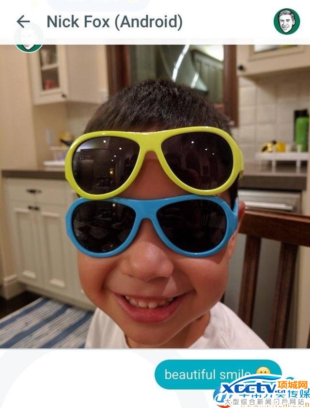 我们是在Allo的“智能回复”(Smart Replies)功能所提示的文本中挑选出这样的对白的。智能回复功能的提示信息都显示在Allo的回复区,并会根据对话的背景来不断更新。你点击智能回复的其中一条信息,就可以将它作为你的回复信息发送出去。当福克斯给我发来一张他的孩子的照片时,Allo看着这张照片,提示我回复“笑得真好看”,并加上一个微笑的表情符。